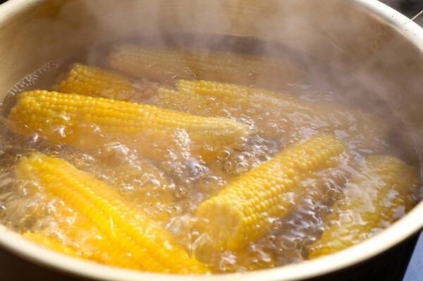 옥수수를 삶을 때 베이킹소다 한 스푼을 넣으면 식감이 훨씬 부드러워지고, 색도 더 노랗게 살아납니다.
