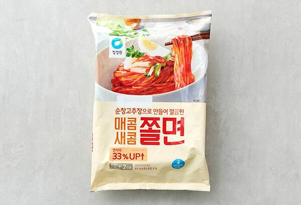 쫄면의 맛을 결정하는 가장 중요한 요소는 소스라 할 수 있다. 청정원에서 선보이는 ‘매콤새콤쫄면’은 소스에 사용되는 고추장으로 순창고추장을 쓴 제품이다. 그 덕에 다 먹고 난 뒤에도 텁텁함이 남지 않고 깔끔하게 즐길 수 있다. 1봉씩 개별 포장된 2인분 구성으로 제공되며, 패키지에는 쫄면사리와 소스뿐이기에 별도의 고명을 곁들여서 먹는 편이 더 즐겁게 즐길 수 있다. 가격은 ,6480원이다.