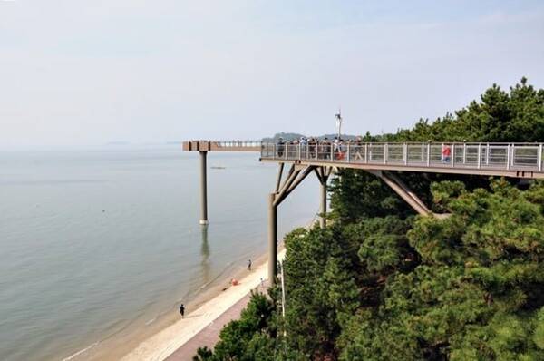 장항스카이워크는 높이 15m, 길이 286m의 국내 최장 스카이워크로 유명합니다. 해송 숲과 갯벌 위로 뻗어 있어 밀물 때는 바다 위를 걷는 듯한 경험을 할 수 있습니다.