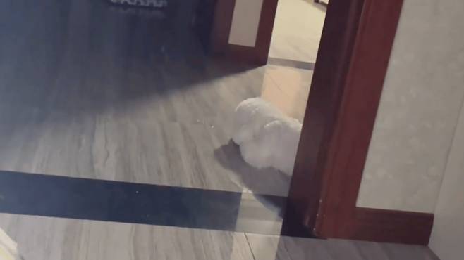 이쪽을 갈까, 저쪽을 갈까 고민하다가 결국 두 방의 중간 지점인 복도에 자리를 잡고 엎드려 잠이 들었으니, 정말로 '눈치 100단'입니다. 어느 한쪽 편을 들지 않고 중립을 지키겠다는 강아지의 현명한 선택이 미소를 짓게 합니다.