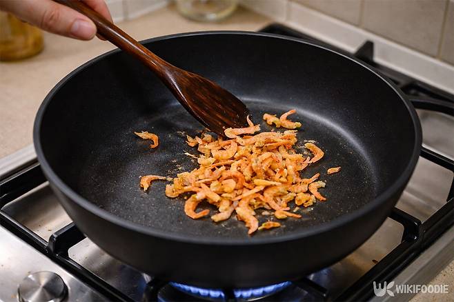 가장 먼저 마른 새우를 냄비에 넣고 센불에서 살짝 볶는다. 새우를 미리 볶으면 비린 맛은 사라지고 고소한 향이 진하게 올라온다.