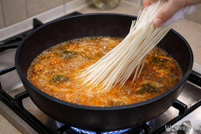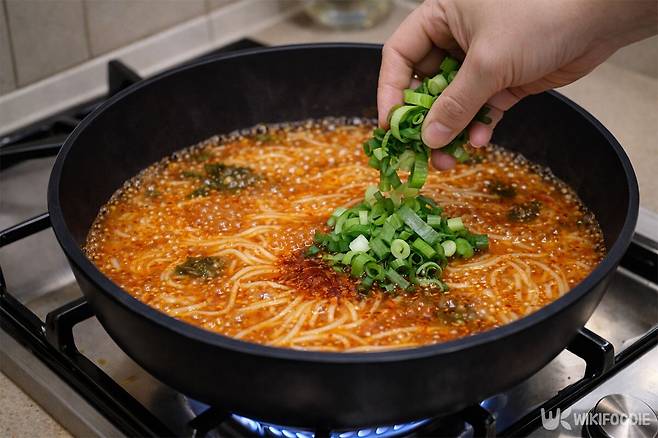 5. 뚜껑을 열고 2~3분 더 끓여 면을 익힌다.
