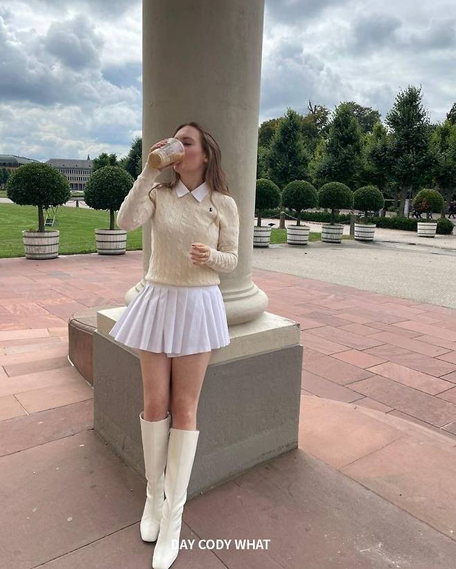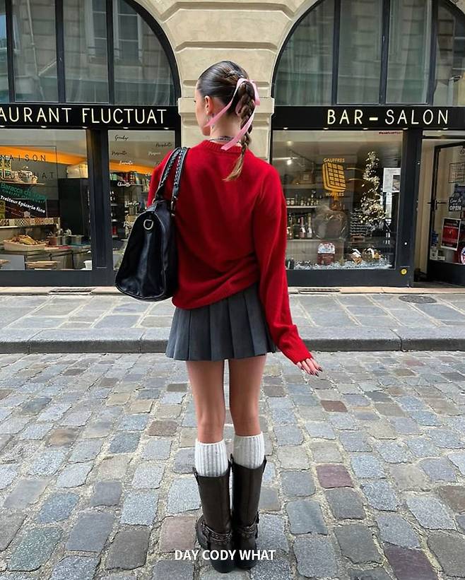 플리츠 스커트로 페미닌한 무드 한 스푼