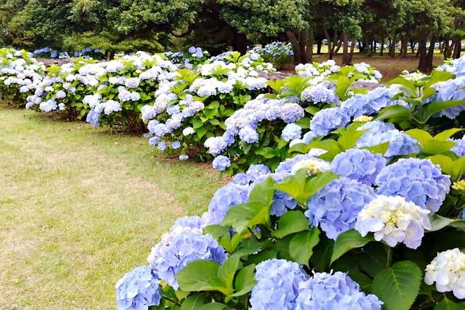 봄에는 벚꽃이, 여름에는 연꽃과 색색의 수국이 만개해 사철이 내내 아름답다.