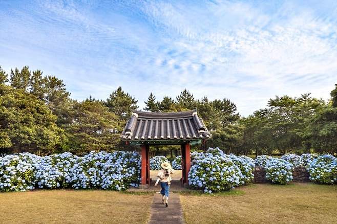 수국이 조금씩 시들어가는 7월임에도 불구하고 이곳의 수국은 탐스럽게 만개해 있다. 한옥을 배경으로 알록달록한 수국이 조화롭게 어우러져 더욱 아름다운 광경을 선사한다.