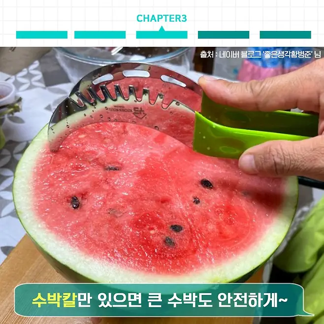 수박이 나오는 여름에 구하려고 하면 이미 품절 될 수 있으니 눈에 보이면 사놓고 여름이 오면 사용하는 것도 나쁘지 않겠죠? 칼로 힘들게 자르지 말고 모두 수박칼 이용해보세요~