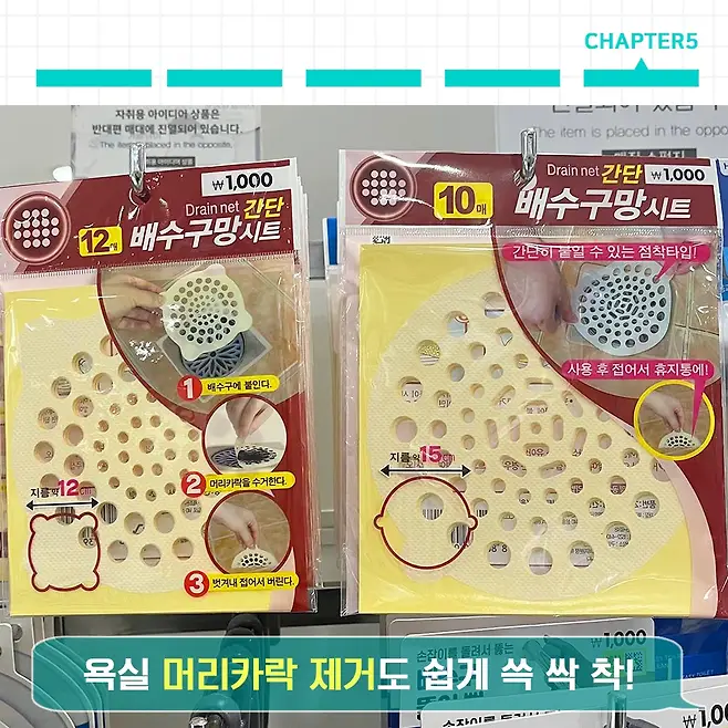 자자 부엌 배수구를 지켜주었다면 이젠 화장실을 지켜줘야겠죠? 이것도 다이소에 물론 있습니다. 화장실 머리 감고 나면 바닥에 떨어져 있는 머리카락. 솔직히 모두가 바로바로 치우진 않을 거라 생각되는데 바로 치우는 자취생들 칭찬해 드림.