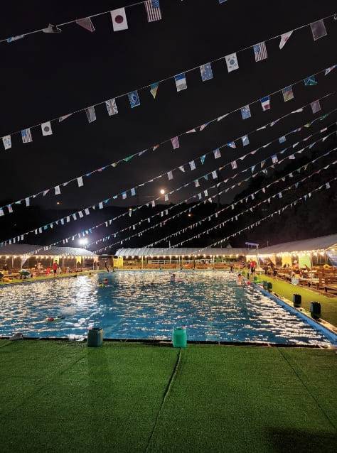 양주의 취사 가능한 야외 수영장으로 추천하는 히든밸리 송추입니다. 취사가 가능한 평상은 방가로타입과 등받이 없는 평상, 등받이가 있는 평상 등 3가지 종류로 구분되어있습니다. 수영장 내 인공 잔디를 깔아두어 미끄러져도 부상의 위험이 적도록 조성되어 있는데요.