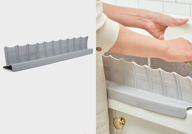 설거지를 할 때마다 물이 사방으로 튀는 사람들을 위한 아이템. 높이가 7cm여서 물이 튀어 옷이 축축해지는 것을 막아준다. 물막이 아래에 붙어있는 흡착판으로 간편하게 설치할 수 있다. 가격 3000원.