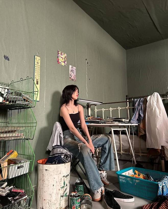 사진 배경 속 따뜻한 조명과 빈티지한 분위기의 공간 역시 이번 패션의 완성도를 높이는 요소다. 플로럴 패턴의 커튼과 어항 속 잔잔한 수면은 감성적인 분위기를 연출하며, 류진의 차분한 눈빛과 자연스럽게 포즈를 취한 모습은 한 편의 영화 속 장면을 떠오르게 한다.