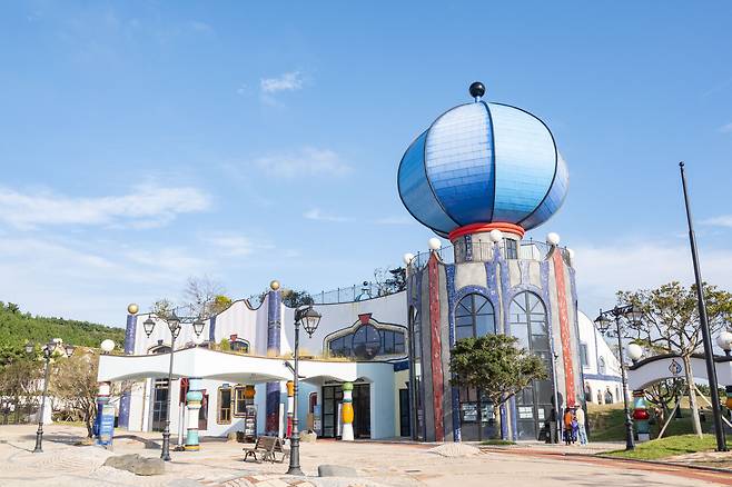 우도항에서 조금만 가면 다소 독특한 테마파크가 위치해 있습니다. 훈데르트바서파크는 오스트리아의 유명한 화가이자 건축가인 프리덴슈라이히 훈데르트바서의 예술 세계를 체험할 수 있는 공간인데요. 입장하기도 전부터 이국적인 풍경을 뽐내고 있어 발걸음이 향하게 될 정도죠.