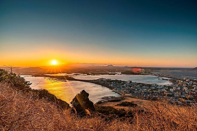 직접 성산일출봉에 올라 그 광경을 보는 것도 좋지만, 올라가지 않더라도 천혜의 일몰 풍경을 즐기실 수 있습니다. 일출봉에 떠오른 석양과 함께 멋진 졸업선물 인증샷을 남겨보세요!