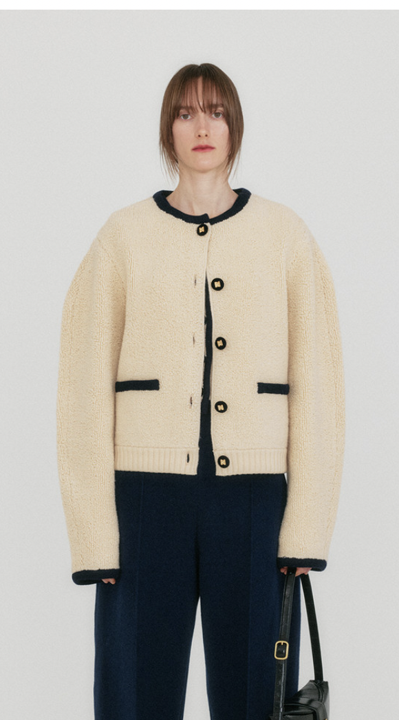 사진 속 가디건 정보 -EENK ZIZI Round Neck Knit Cardigan - Beige*