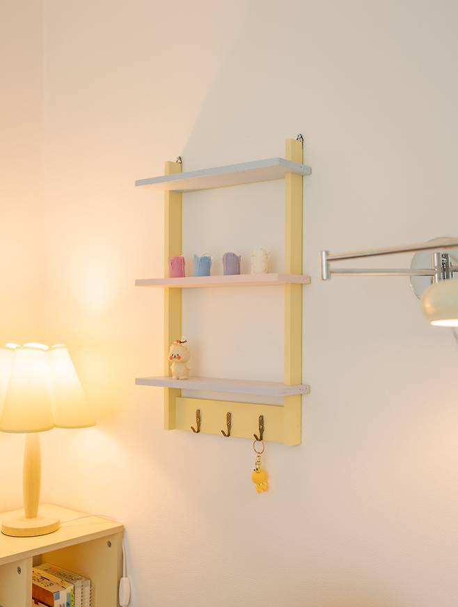 옆으로는 간단한 소품들을 올려둘 수 있도록 벽선반을 설치했는데요.