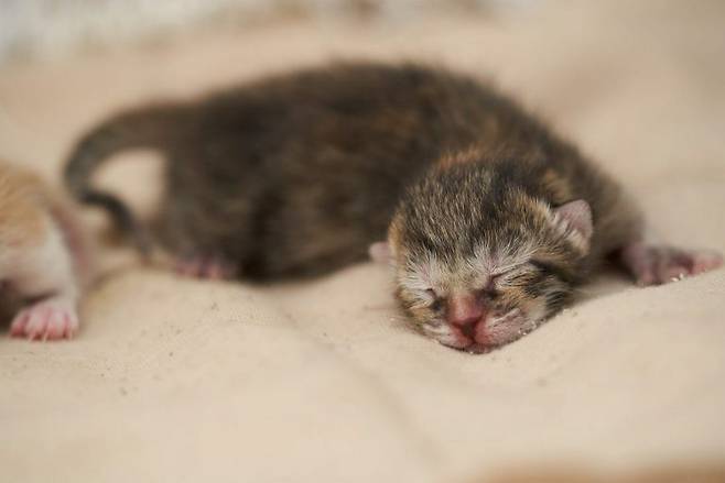 그리고 갓 태어난 새끼 고양이는 깨어있는 시간이 드물다고 해요. 엄마 고양이가 두세 시간에 한 번씩 핥아주면서 깨우기 전까진 계속 잔답니다.