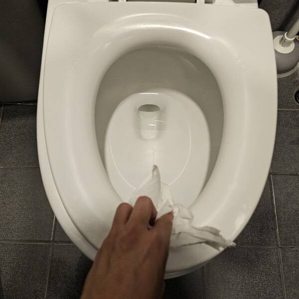 휴지는 얇게 여러 겹, 좌변기 전체를 넉넉히 덮는 것이 기본입니다.