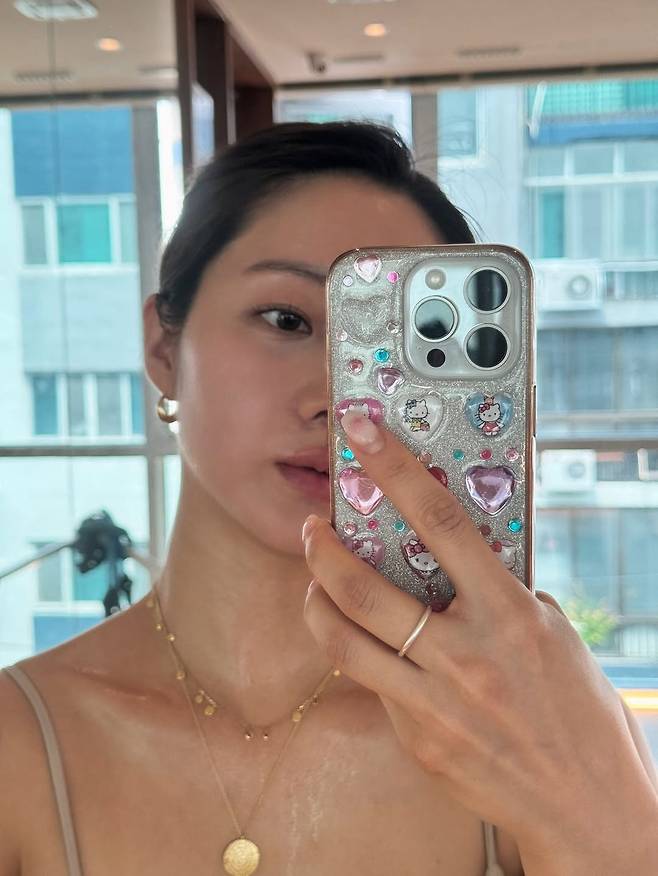 특히 허리부터 엉덩이로 이어지는 곡선은 조각 같은 비율 그 자체. 팔과 어깨 라인, 근육이 자연스럽게 살아 있는 모습은 운동 루틴의 꾸준함을 증명한다.