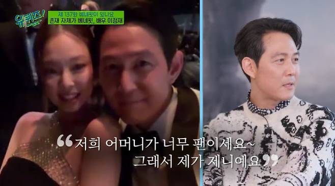 그렇게 남다른 인연이 있다는 사실을 알게 된 두 사람. 제니는 자신과 협업을 이어오고 있는 아이웨어 브랜드 젠틀몬스터와의 콜라보 제품을 이정재에게 선물하기도 했으며, 이정재는 이를 유쾌하게 인증하며 훈훈함을 선사하기도 했다.