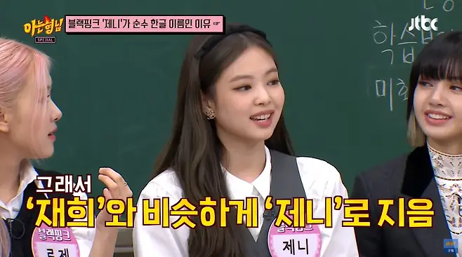 1996년생인 제니, 그녀의 어머니는 아들이 태어나면 이정재가 '모래시계'에서 맡았던 '재희'라는 이름을 지어주려고 했으나 딸이라서 발음이 비슷한 '제니'라고 지어주었다고 한다.
