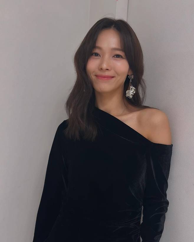 선예는 세련된 블랙 원숄더 톱으로 모던하면서도 우아한 분위기를 연출하고 있다. 한쪽 어깨를 드러낸 비대칭 디자인이 여성스러운 매력을 극대화하며, 크리스털 드롭 이어링이 포인트 액세서리로 활용되어 고급스러운 느낌을 완성하고 있다.