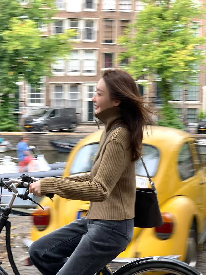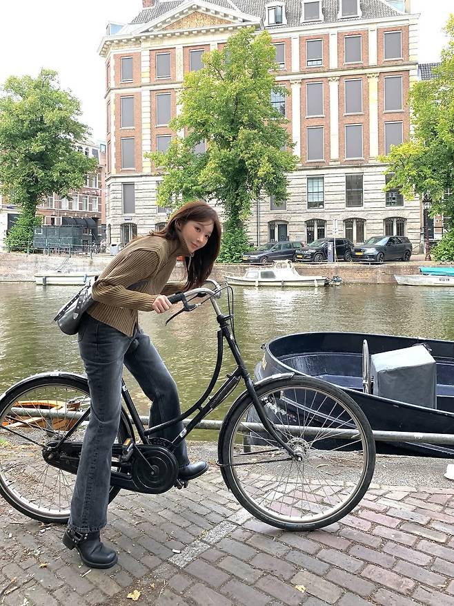 최근 강민경은 자신의 SNS에 "여기 살고 싶다"는 글과 함께 유럽의 한 도시에서 자전거를 타는 사진을 공개했다.