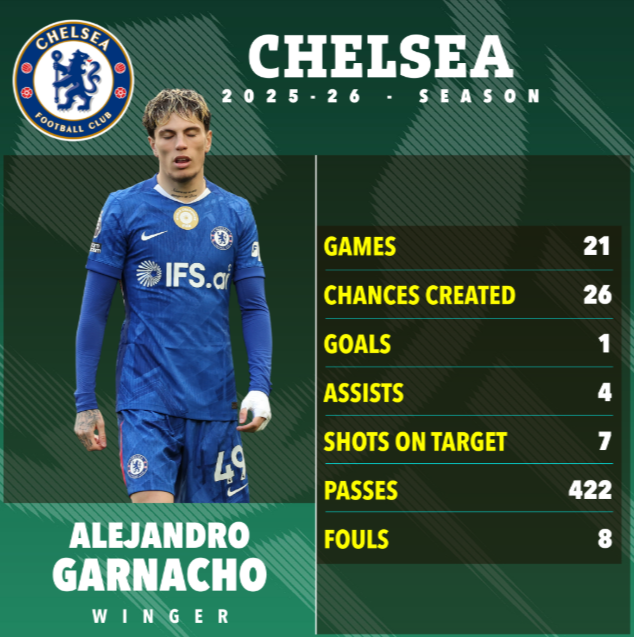 이적 이후 가르나초는 “이적 결정은 매우 중요했고 잘했다고 생각한다”며 자신감을 드러냈다. 그러나 시즌 종료 시점에서 돌아본 가르나초의 첼시 데뷔는 ‘낙제점’에 가까웠다. 가르나초는 이번 시즌 첼시에서 리그 21경기를 포함해 공식전 38경기에 출전했다.