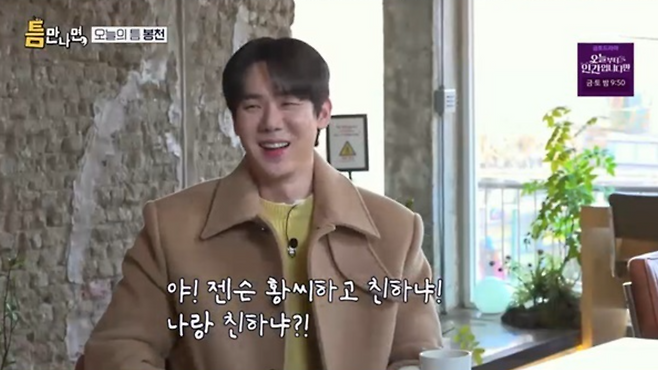 대화는 자연스럽게 소속사 회식 이야기로 이어졌다. 유재석은 이광수를 언급하며 “회식 때 광수도 왔냐”고 물었고, 유연석은 “왔다”며 “젠슨 황이 식사했던 치킨집에서 회식을 했다”고 답했다.