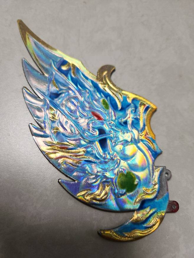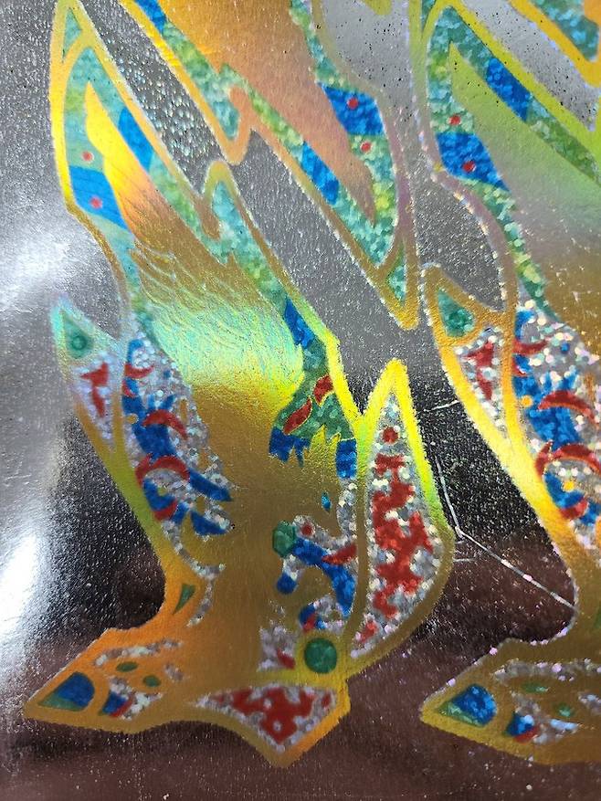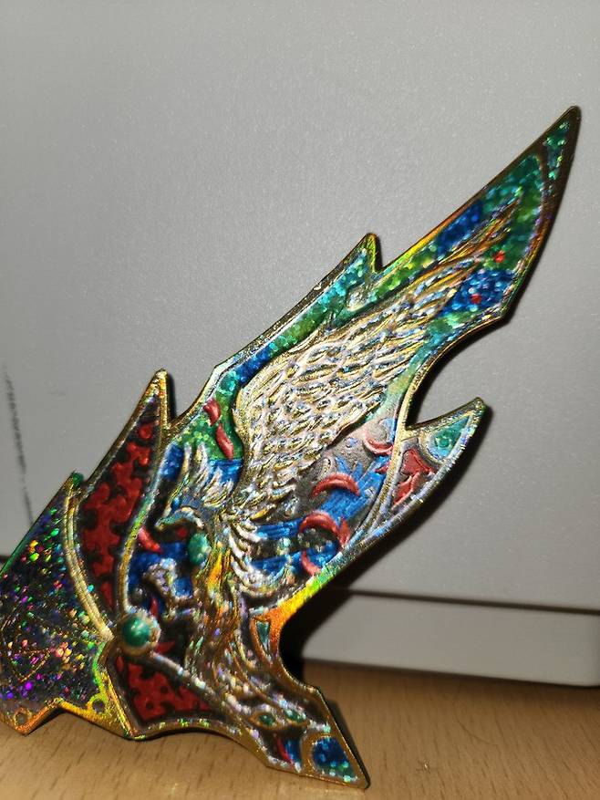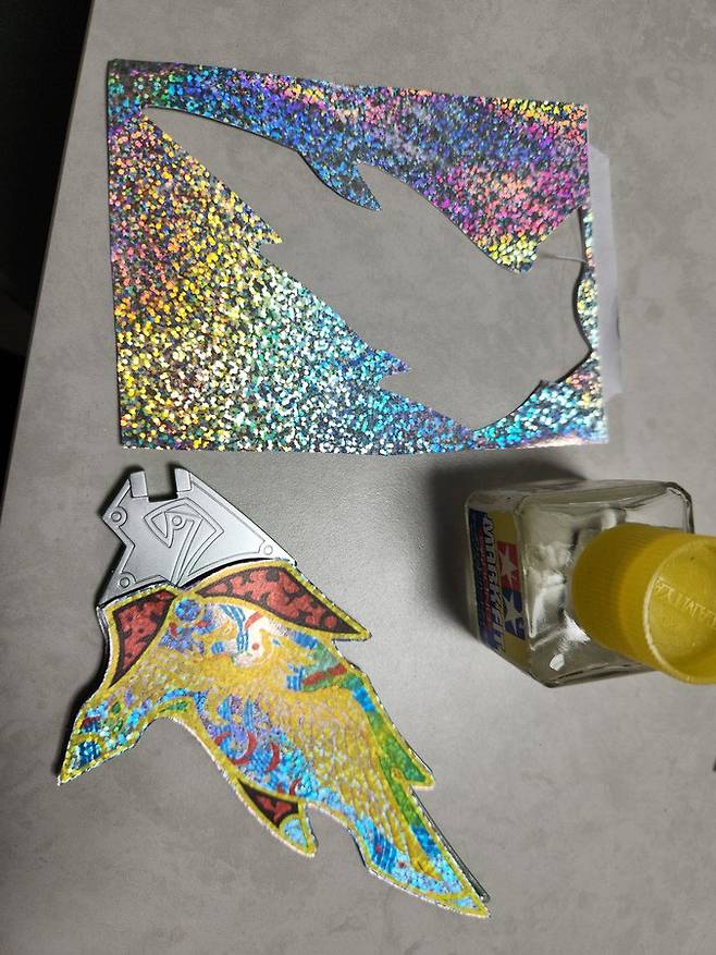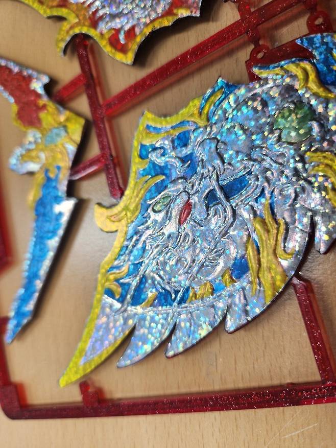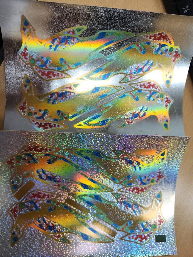 위 사진은 은색 1차전사 위에 홀로그램으로 2차 전사