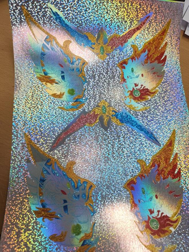 알리에서 토너반응 호일 구매하여 다시 해봅니다. 2롤 코팅기로는 홀로그램 호일이 수율이 월등히 높네요. 여기 위에 습식데칼을 붙여줄겁니다.