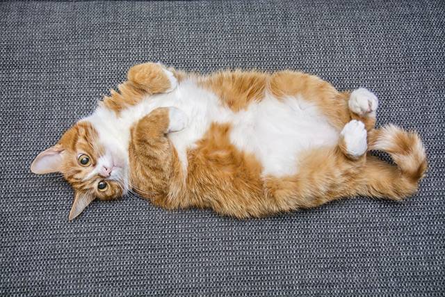 장기를 보호하는 뼈가 없는 배는 적으로부터 공격받으면 치명상을 입을 수 있는 부위라 쉽게 드러내지 않는다. 또한 고양이는 뒤에서 습격을 받으면 대처하기 어렵기 때문에 경계하는 상대에게 뒤를 보이지 않는 것으로 알려져 있다. 그렇지만 이런 고양이라도 믿을 수 있는 상대라고 판단하면 배도 보여주고 엉덩이도 보여준다.