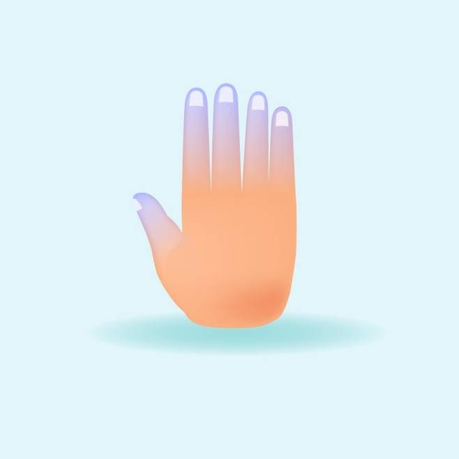 • 레이노 현상: 추위나 스트레스에 노출되면 손가락이 하얗게 변하고, 파랗게 변했다가 붉은색으로 돌아오면서 통증과 가려움이 동반됩니다.