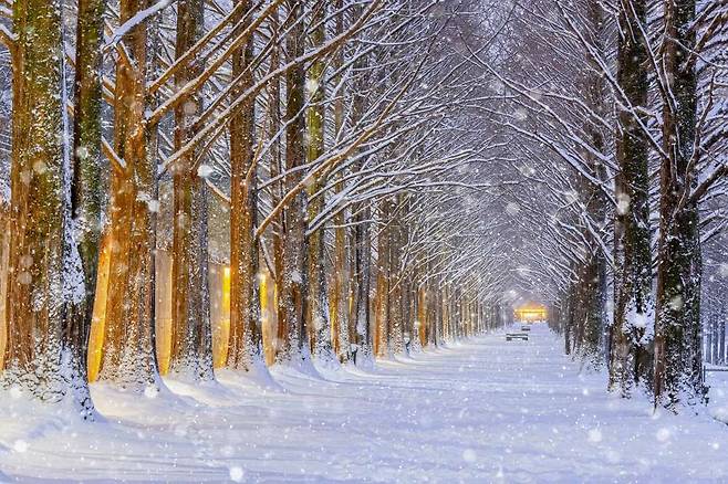 전남 담양에 겨울이 찾아오면, 숲은 조용히 눈을 머금고 완전히 다른 세계로 변합니다. 특히 담양 메타세콰이어 길은 눈이 내리는 날이면 그 아름다움이 정점을 찍습니다. 긴 나무들이 일렬로 선 길은 고즈넉한 하얀 터널이 되고, 눈송이마저 풍경의 일부가 되는 순간이 펼쳐집니다.