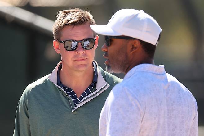 사이즈모어가 애리조나 인턴직으로 들어온 건 당시 애리조나 선수 육성 부서를 이끈 조시 바필드 덕분이었다(두 번째 사진에서 게츠가 바라보는 인물). 사이즈모어와 바필드는 1982년 동갑내기로, 둘은 클리블랜드 선수 시절 절친한 사이였다. 바필드가 2023년 9월에 화이트삭스 게츠 단장 보좌역으로 이동했고, 바필드의 추천으로 사이즈모어도 화이트삭스 외야/주루 코치로 합류할 수 있었다.
