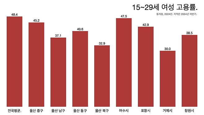 “여전히 구인 수요가 구직 수요보다 크다. 일자리는 많다는 거다. 문제는 ‘좋은 일자리’가 없다. 좋은 일자리 여부는 자신의 경력을 이어갈 수 있느냐에 있다. 지방 산업도시에서 승진할 수 있는 정규직 일자리는 여성에게 주어지지 않는다. 일단 주력 제조 산업이 여성 채용을 하지 않는다. 조선업을 살펴보면, 몸을 쓰는 생산직은 그렇다 쳐도 사무직은 성별이 중요하지 않다. 조선의 경우 여성 엔지니어(설계·생산 관리)를 많이 뽑던 시절도 있었지만, 기본적으로 성비가 남자 95%에 여자 5%다. 지방에서 여성에게 주어진 일자리 중 교사와 공무원 정도를 제외하면 질 좋은 일자리는 없는 셈이다.