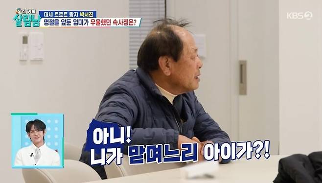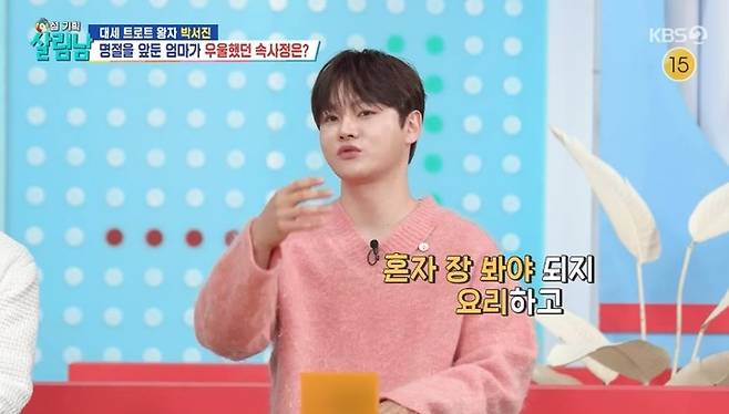 14일 KBS2 '살림하는 남자들 시즌2'에서는 대세 트로트 왕자 박서진의 엄마가 명절을 앞두고 부쩍 우울해하는 모습이 전파를 탔다.
