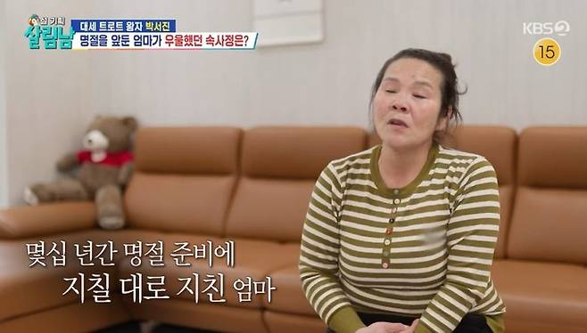 박서진 어머니는 "명절이 가장 힘들다"라고 토로하며 "나만 혼자 며느리가 아니지 않냐. 내 마음이 안 좋아 솔직히 올해는 그냥 넘어가려 했다"라고 털어놨다.