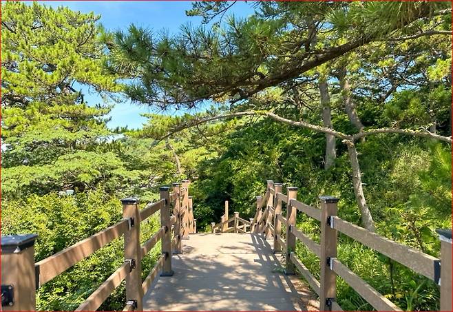 만지도를 더욱 특별하게 만드는 것은 바로 연대도와 연결된 보도교입니다. 에메랄드빛 바다 위를 가로지르며 연결된 길을 따라 걷다 보면 섬과 섬을 잇는 풍경이 장관을 이룹니다. 이곳은 인생샷 명소로도 유명해 많은 방문객들이 멋진 사진을 남기고 가죠.