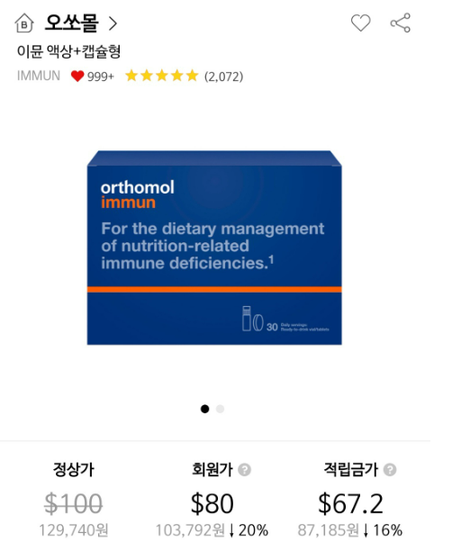 면세점에서 인기 있는 품목 중 '영양제'를 빼놓을 수 없는데요. 직장 동료나 지인들에게 줄 선물로 많이들 구매하곤 합니다. 정관장 홍삼, 오쏘몰이 높은 할인률로 사랑을 받고 있습니다. 정관장은 항시 5% 세일을 하고 있으며, 적립금은 19% 사용이 가능합니다. 오쏘몰은 롯데면세점이 가장 저렴합니다.