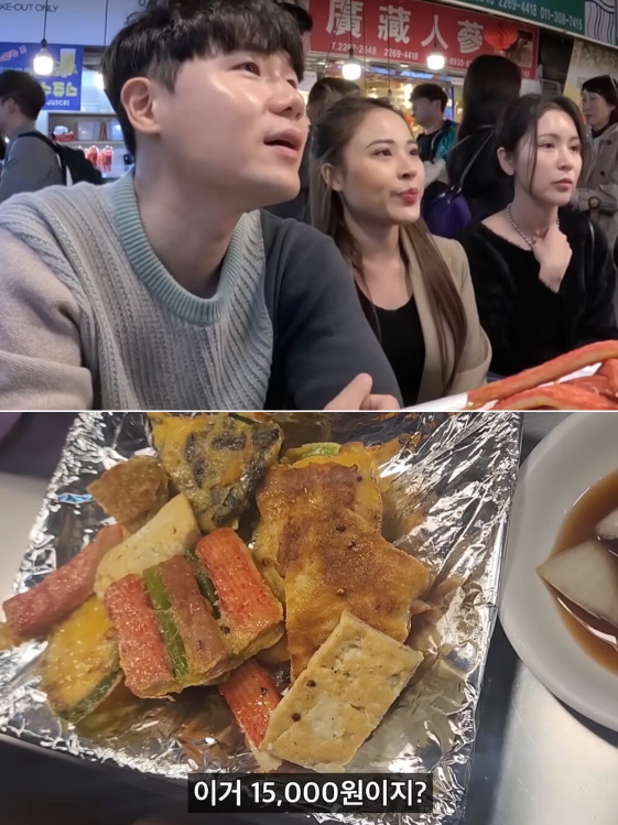 유튜버 일행이 1만 5000원짜리 모둠전을 주문하자 상인은 "3명이서 양이 적어서 못 먹는다"며 더 시킬 것을 권유했는데요. 이에 일행은 '일단 먹어보고 더 시키겠다'고 했지만 상인은 "2명이 와서 먹는 양이라 얼마 안된다"라며 재차 추가 주문을 유도했습니다.