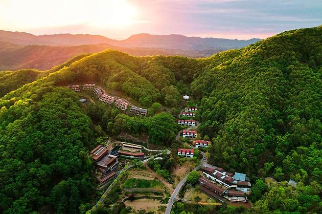 종자산의 탁 트인 전망이 있는 은신처인 ‘힐리언스 선마을 리조트(Healience Seonmaeul Resort)’는 손님들이 마음의 균형을 맞추고 몸에 영양을 공급할 수 있도록 설계되었습니다.
