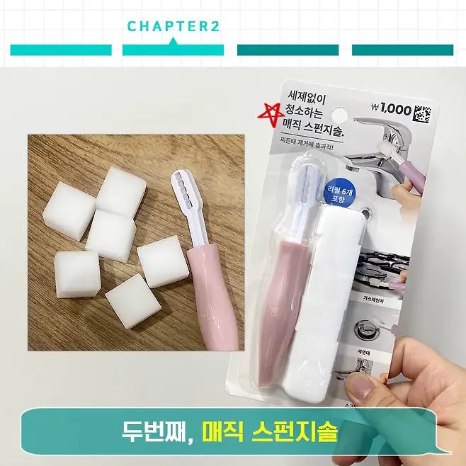 청소할 때 매직스펀지 사용하는 분들, 푸쳐핸즈업~ 가 엄청 사랑하는 아이템 중에 하나이기도 해요. 세제 없이 물 때, 기름 때 청소할 때 최고잖아요. Right?