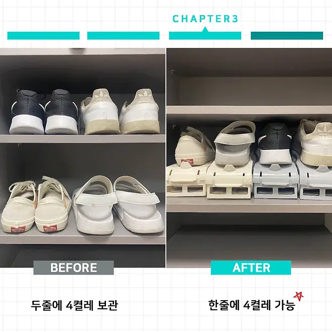 이 신발장 정리대가 얼마나 유용한지 보여드리려고 비교짤 준비했어요.