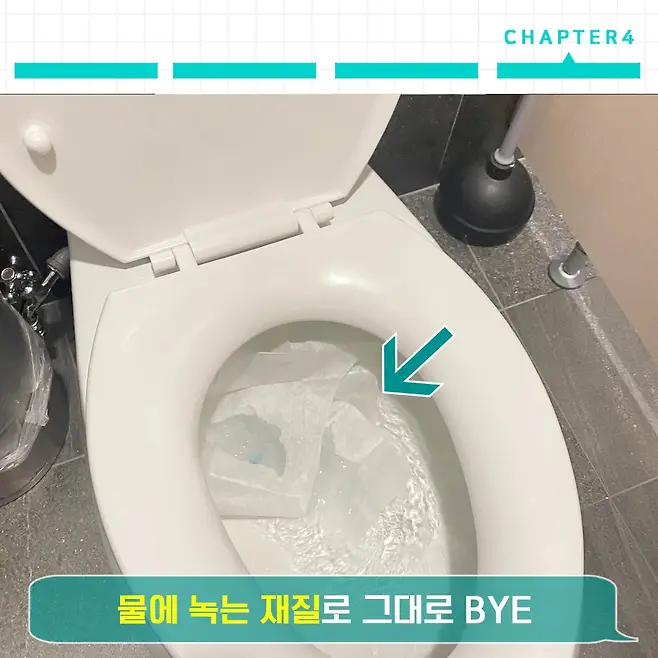 그리고 제일 좋은 점이 이거 물에 잘 풀어지는 플루셔블 원단이라 그냥 변기에 버려주면 바로 내려가요. 세상 편함. 신세계가 열려요.