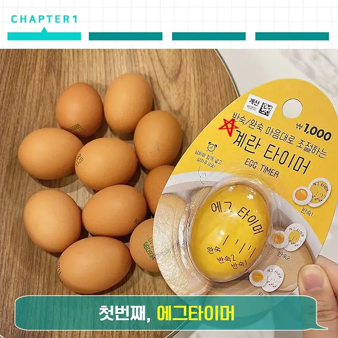 계란 완전 닮은 에그타이머부터 소개할게요. 이거 완전 물건이에요. 이거 하나면 요린이도 반숙 완숙 ALL KILL.