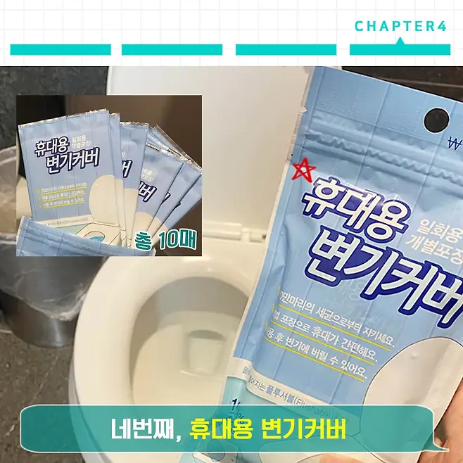바로 휴대용 변기커버인데요. 우리가 집에서만 생활하는 게 아니다 보니 회사도 그렇고, 지하철이나 공공장소 화장실을 종종 사용하잖아요? 근데 그때마다 위생 걱정에 난감했던 밥심...
