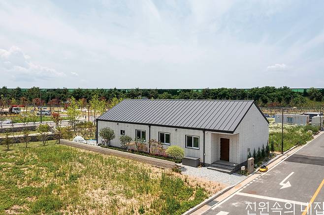 소담스레 자리 잡은 단층 주택은 견고하고 간결한 외관 속에,