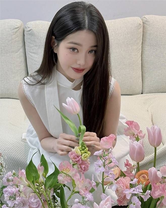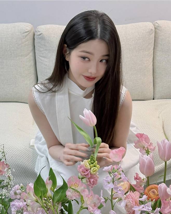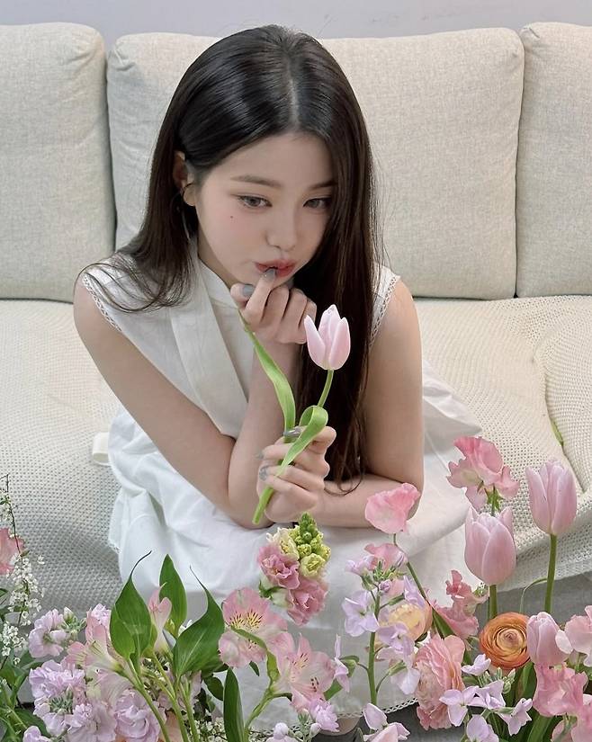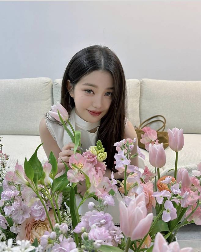 아이브 장원영이 21일 인스타그램에 "🌷🪷💐🌸🌺" 이모티콘과 함께 여러 장의 사진을 게재했습니다.