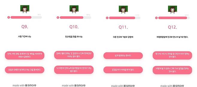 티니핑 MBTI 테스트는 일반적으로 성격 유형에 대한 간단한 문항들로 구성되며, 총 12개의 간단한 질문에 답하면서 자신의 성격을 분석할 수 있습니다.