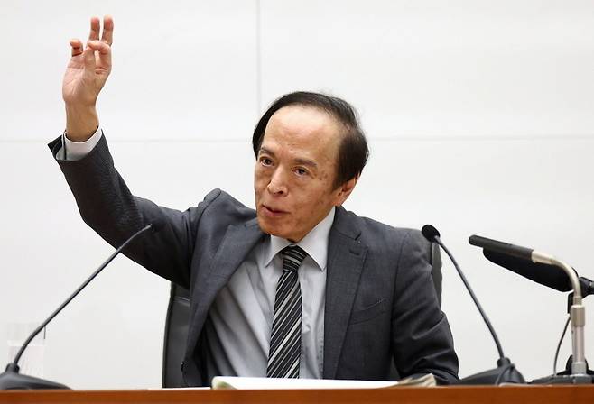 [일본 중앙은행인 일본은행 우에다 가즈오 총재가 17일 기자회견에서 발언하고 있다. (도쿄 로이터=연합뉴스)]