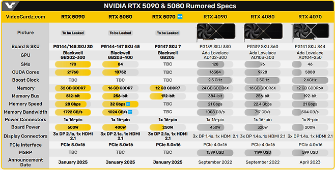 스펙 루머 쏟아지는 중, RTX 5070 스펙도 윤곽 나왔다